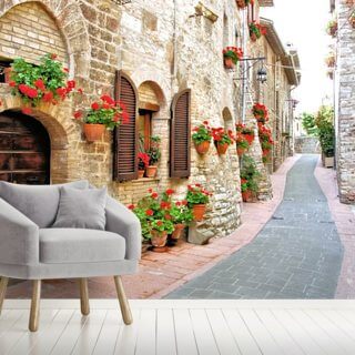 custom facade wallpaper mural called Tuscan Old Town Street for kitchens