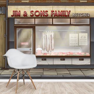 grey and red customisable post office wallpaper mural called Post Office for care homes
