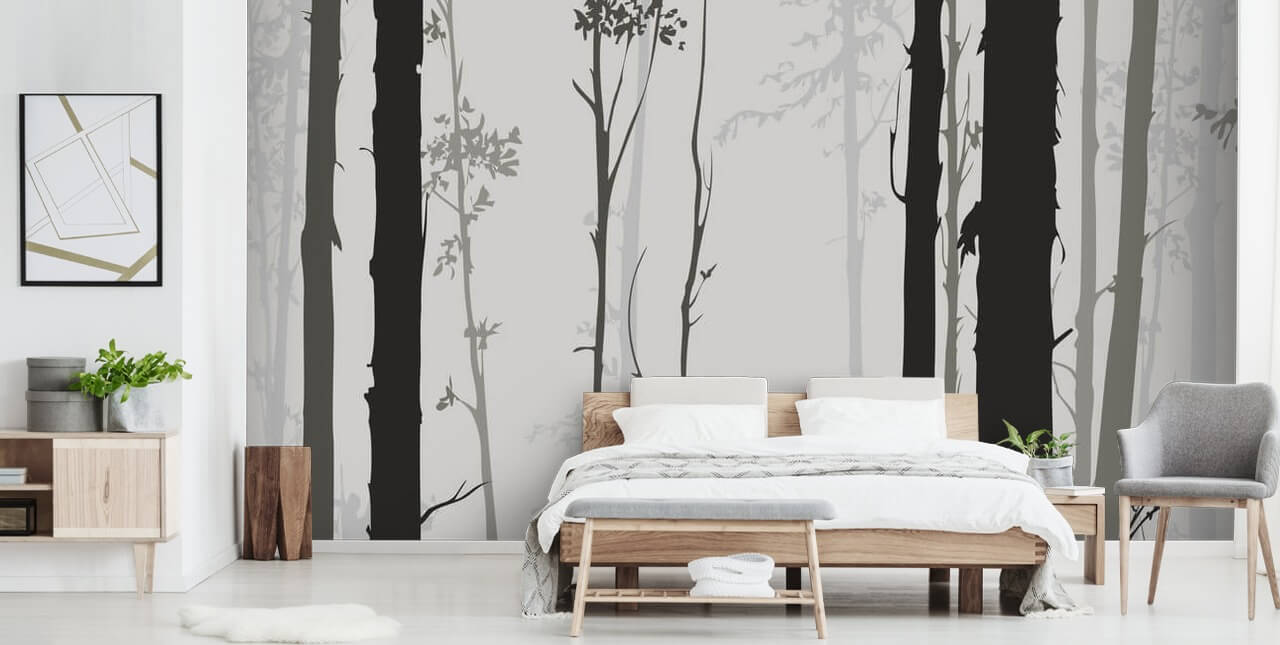 Install this custom-made Forest Silhouette wallpaper to bring the outdoors indoors.