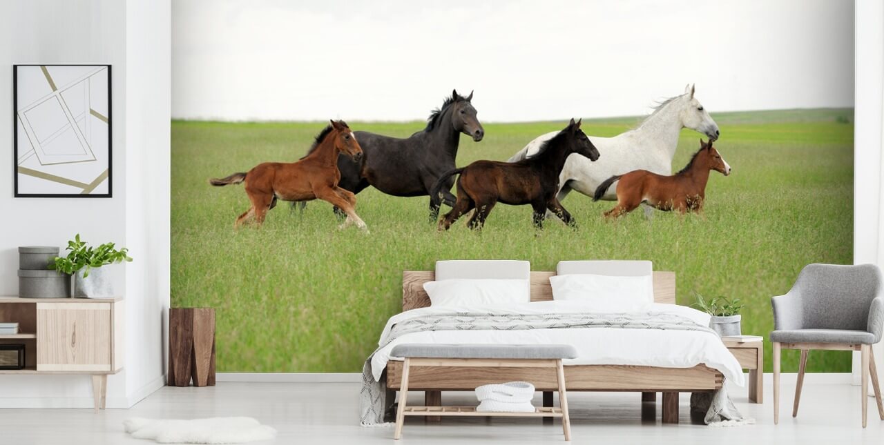 Feel close to the country with this beautiful Galloping Foals and Mares wallpaper. Custom-made to fit your wall's dimensions.