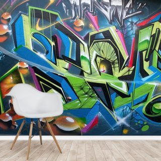 Beauty is in the eye of the beholder, and with this graffiti style wall art, you will be entranced. Using a splatter effect in blues, greens and yellows, this wallpaper is simply eye-catching. This wall mural will be gorgeous when set as an accent wall in your bedroom or living room. Using our wallpaper service, we can send this wallpaper to you according to your exact wall specifications.
