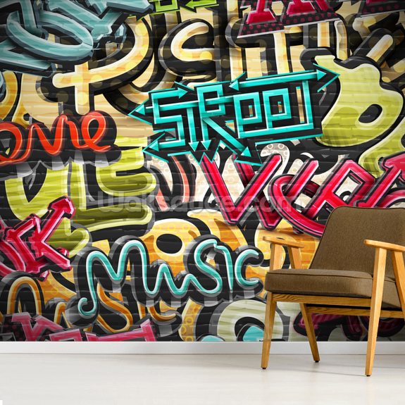 Inspired by hip-hop music and street art culture, this wallpaper is perfect for any teenager's room, or even to accentuate a living room wall. Order online and we'll send this wallpaper to you in the exact measurements you need, making it unique to your wall.