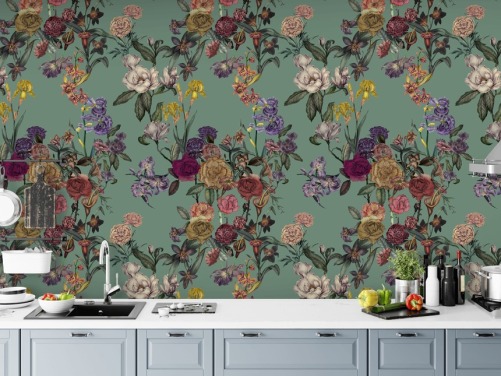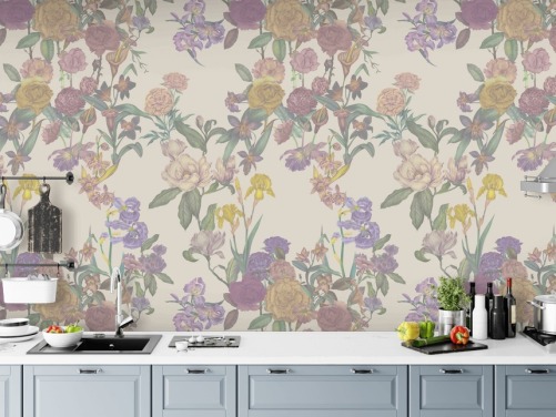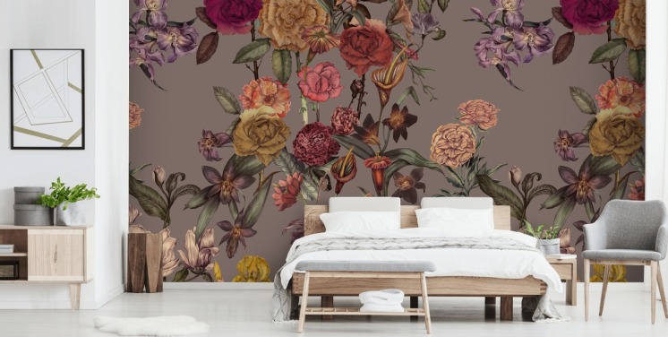 colourful wildflower wall mural called Ease by Marina Stupakova for bedrooms, living rooms and hallways