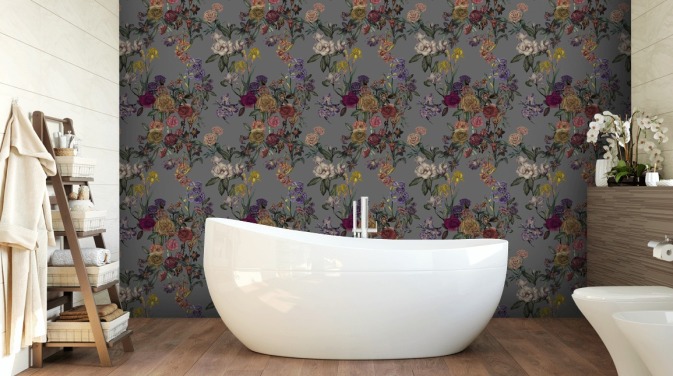grey jungle wall mural called Jungle Birds and Butterflies Grey at Wallsauce for bathrooms, kitchens and living rooms