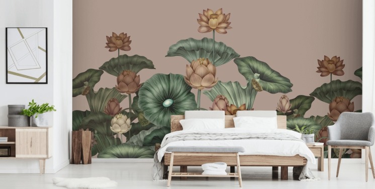 beige jungle wall mural called Flamingos in the Jungle at Wallsauce for bedrooms, living rooms and hallways