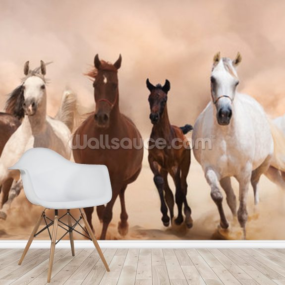 Install this custom-made Herd of Horses Panoramic wall mural. Supplied in panels and made in a wallpaper of your choice.