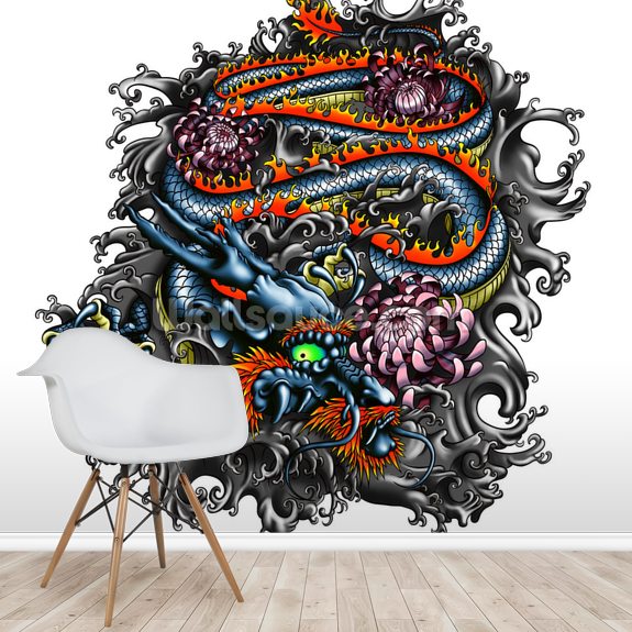 Install this custom-made Japanese Dragon wallpaper. Available in peel and stick or paste the wall wallpaper.