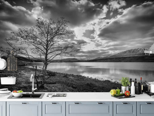 Black and White Lake View Wall Mural