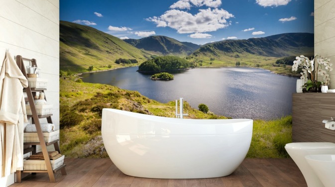 blue and green lake wallpaper mural called Haweswater from Whiteacre Crag for bedrooms, living rooms and home offices