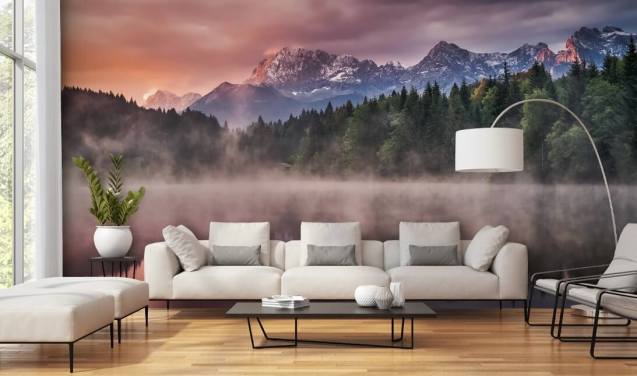 Misty Lake Sunset Wall Mural