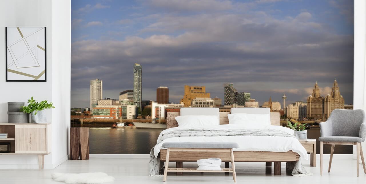 Stunning Liverpool Skyline Wallpaper wall mural from Wallsauce. This high quality Liverpool Skyline Wallpaper wallpaper is custom made to your dimensions. Easy to order and install .