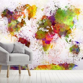 colourful map wallpaper mural called World Map Colour Splash for home offices, bedrooms and more