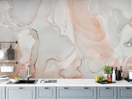 pink and gold marble wallpaper mural called Blush Agate Marble by Lara Skinner for bedrooms