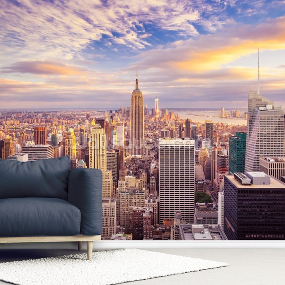 Stunning Midtown Manhattan Sunset wall mural from Wallsauce. Easy to order and install .