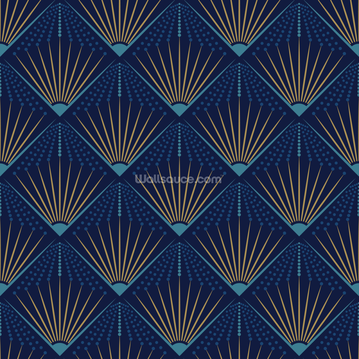 Navy Sunrises - Navy Art Deco Wallpaper
