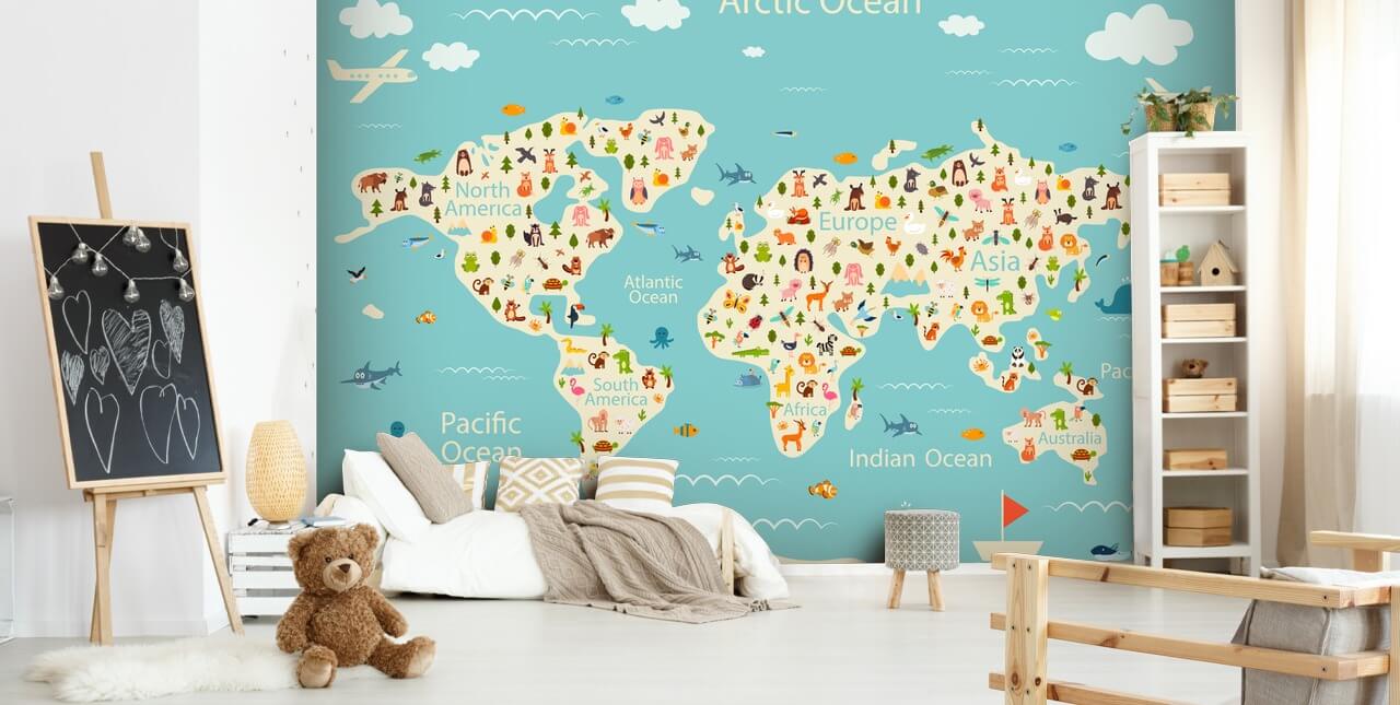 There isn’t a better choice for your baby’s bedroom than this custom-made Nursery World Map wallpaper.