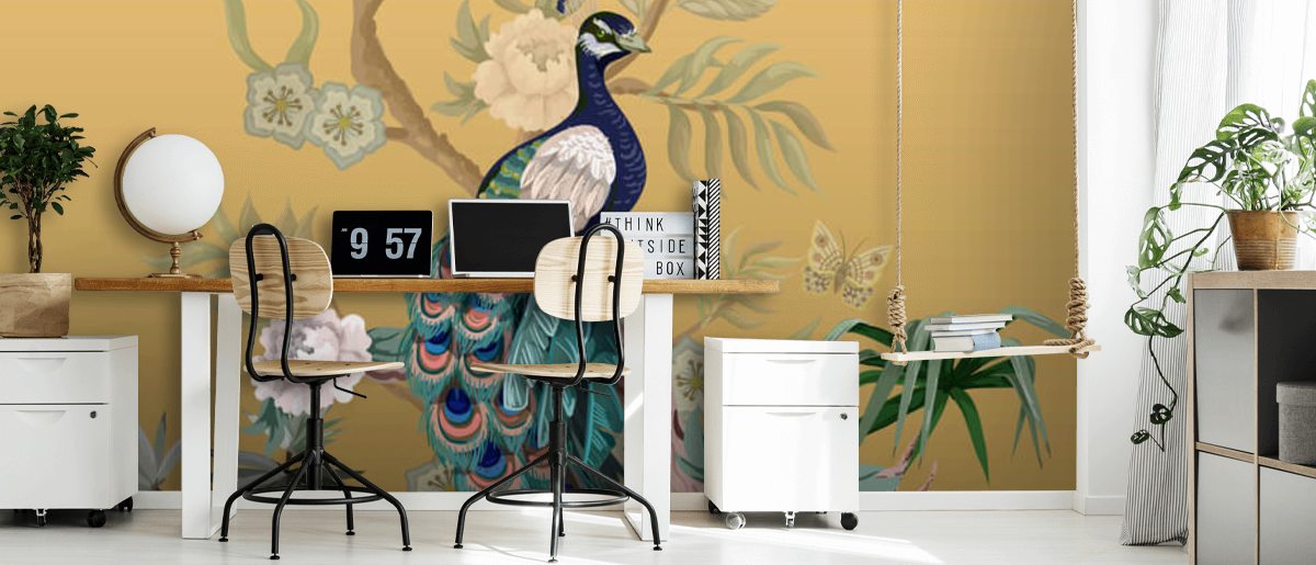 Enjoy this custom-made Peacock Power wallpaper mural.
