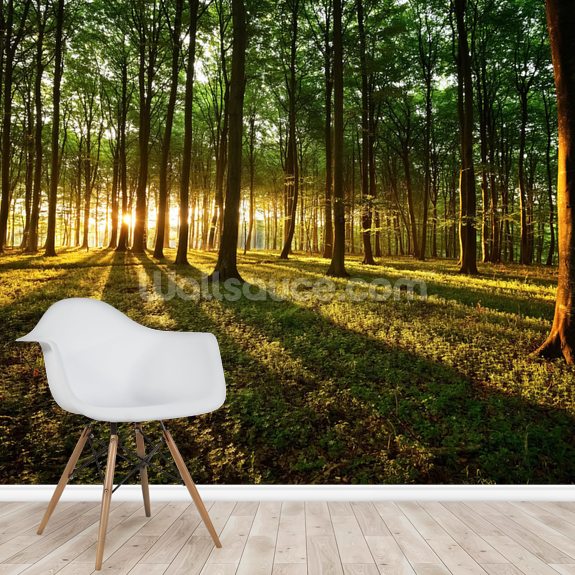 Add rays of sunshine to your decor with this stunning forest wall mural. Capturing a beautiful sunset as it peers through trees, this beautiful mural is sure to create a talking point in any room.