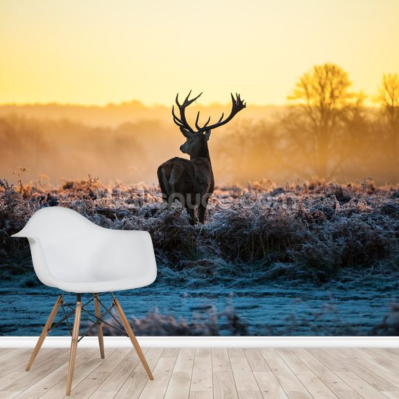Feel calm and utterly peaceful with this beautiful Red Deer Sunrise wallpaper in your home. The golden warmth of the sun contrasted against the crunchy, icy ground is a beautiful contrast. We can almost breathe in the cold air yet feel the warmth of the sun on our faces!