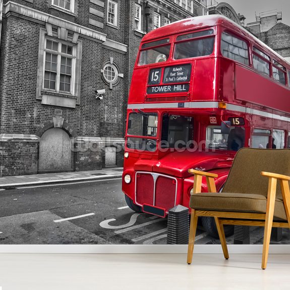 Order your red London bus mural wallpaper to fit the entire size of the wall for full impact and to capture the beauty of England's capital city.