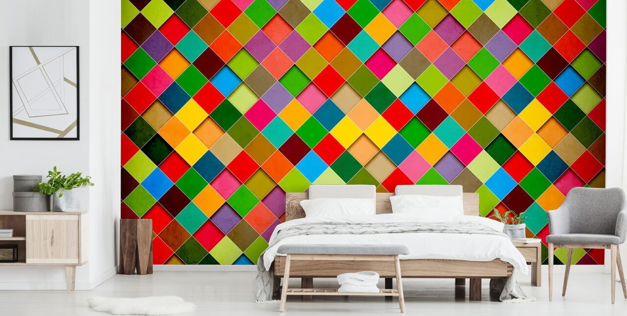 If you would like to own this colourful geometric wallpaper, simply fill out the order form which you can find on this page. It’s really simple. All we ask for are your wall’s dimensions and choice of wallpaper material. We offer classic or premium paste the wall or textured peel and stick.