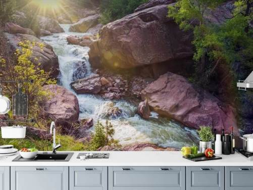 green stream wallpaper mural called Beautiful Mountain Stream at Wallsauce for bedrooms, bathrooms and offices