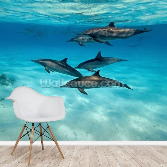 Transform your home with this custom-made Dolphin Family wall mural. Made in paste the wall or peel and stick wallpaper.