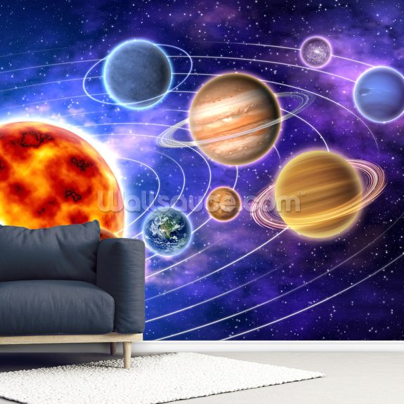 Install this custom-made Planets Orbiting Sun wall mural. Supplied in panels and delivered with instructions.