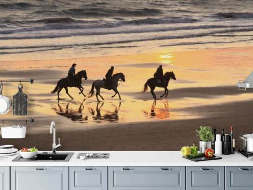 Horses Running on a Sunset Beach Wallpaper