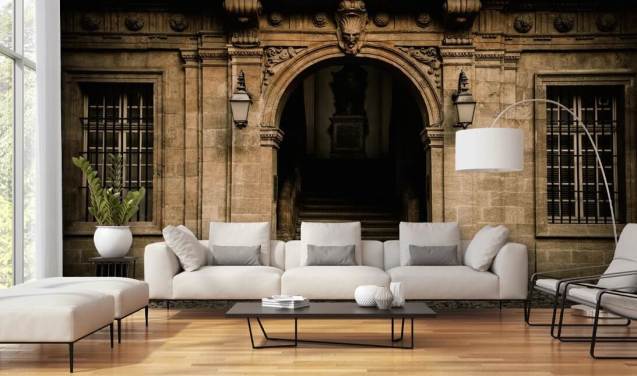 Arched Stone Doorway to Building Wall Mural