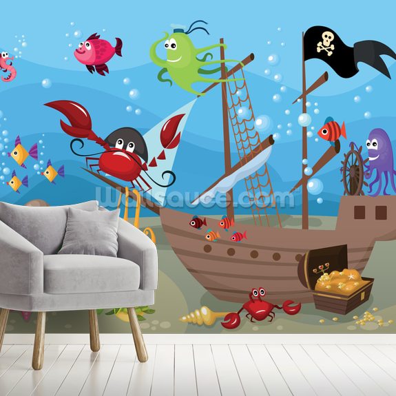 Bring a sense of magic adventure into your child's bedroom or nursery with this gorgeous Sunken Pirate Ship wallpaper!