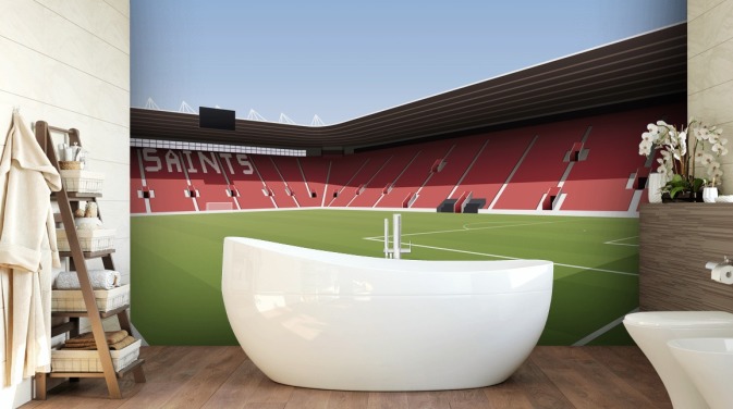 red, white and green customisable Southampton wallpaper mural called St Mary's Stadium Football Stadium for bedrooms