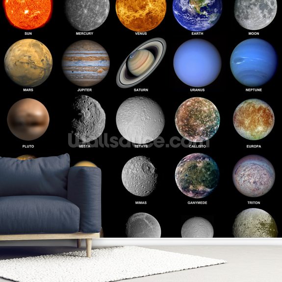 The Solar System Wallpaper wall mural from Wallsauce. This custom-made planet wallpaper is easy to order and install.