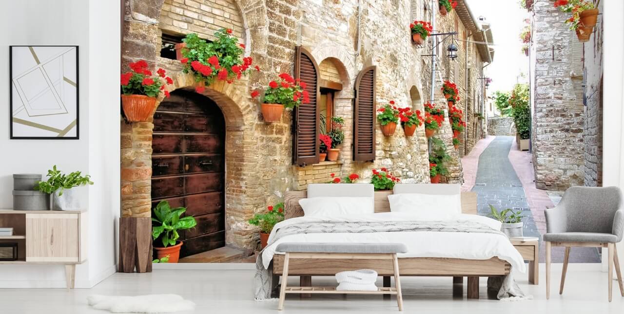 Italian hill top street view mural is made to measure to your dimensions. Fast Free Delivery.