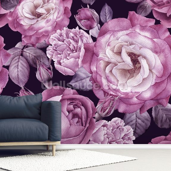Order this on-trend, custom-made Ultra Violet Roses Dark Floral wallpaper in your bedroom for a luxurious feel.