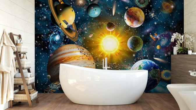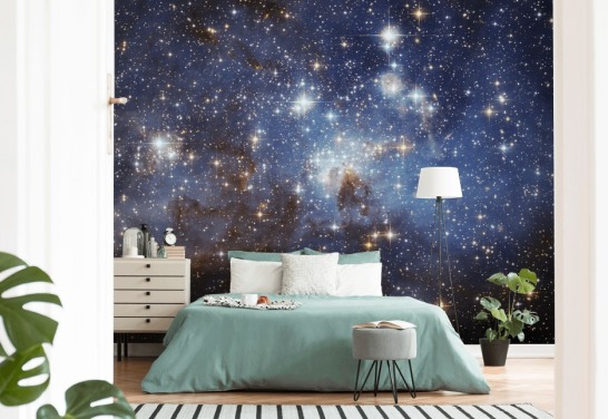 blue and purple customisable space wallpaper mural called Space for child's bedroom