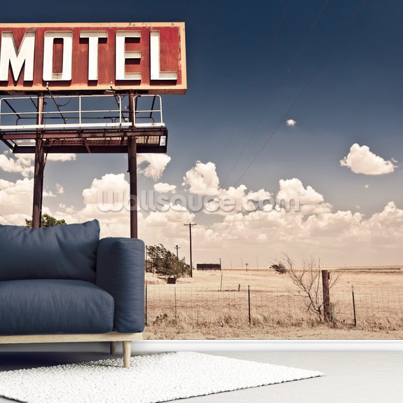 Stunning Vintage Route 66 Motel wall mural from Wallsauce. This high quality Vintage Route 66 Motel wallpaper is custom made to your dimensions. Easy to order and install .