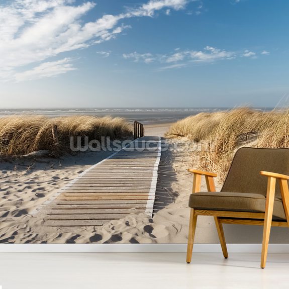 Let your mind wander as the boardwalk leads your eye down to the beach in this stunning beach mural. With its neutral tones, this aptly titled Windswept Beach wall mural gives off calming and soothing vibes. Perfect for chilled out living rooms, dining rooms or as a kitchen wallpaper, this coast wallpaper mural is sure to make a statement in your home.