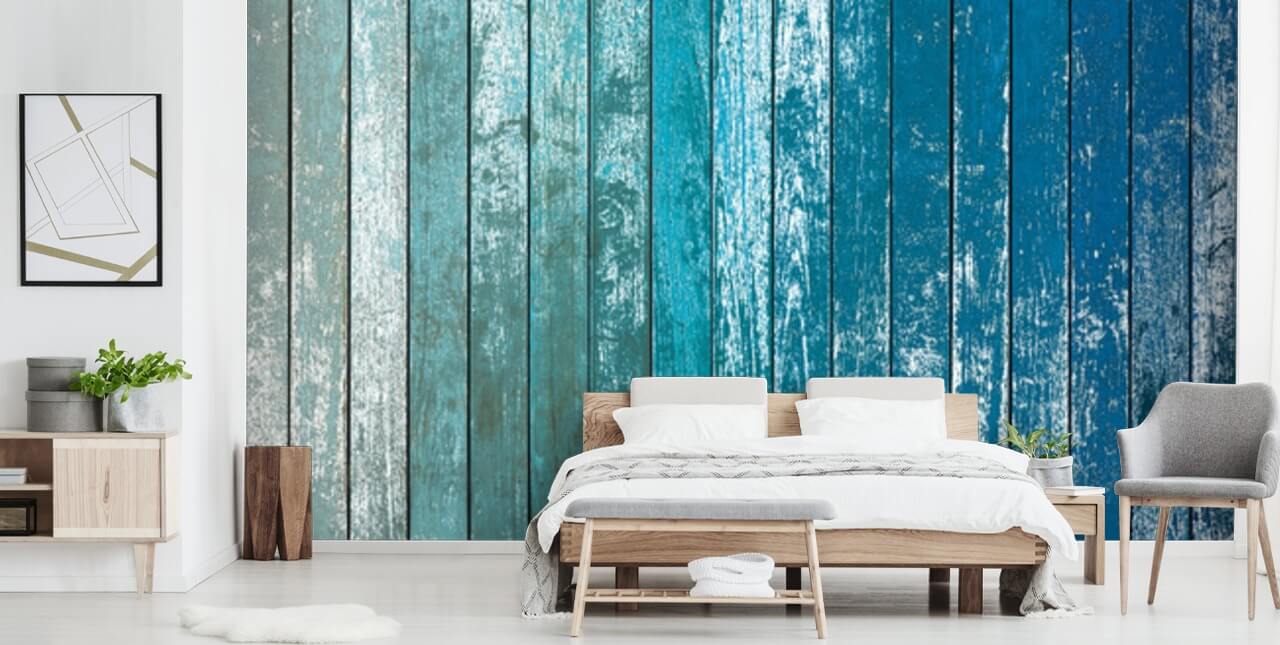 Shop this rustic Worn Blue Boards wallpaper mural. Custom-made to fit the wall.