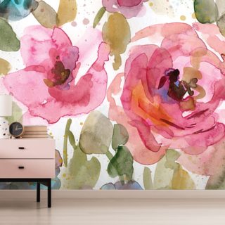 pastel customisable floral wallpaper mural called Linen Wildflower by Carol Robinson for bedrooms
